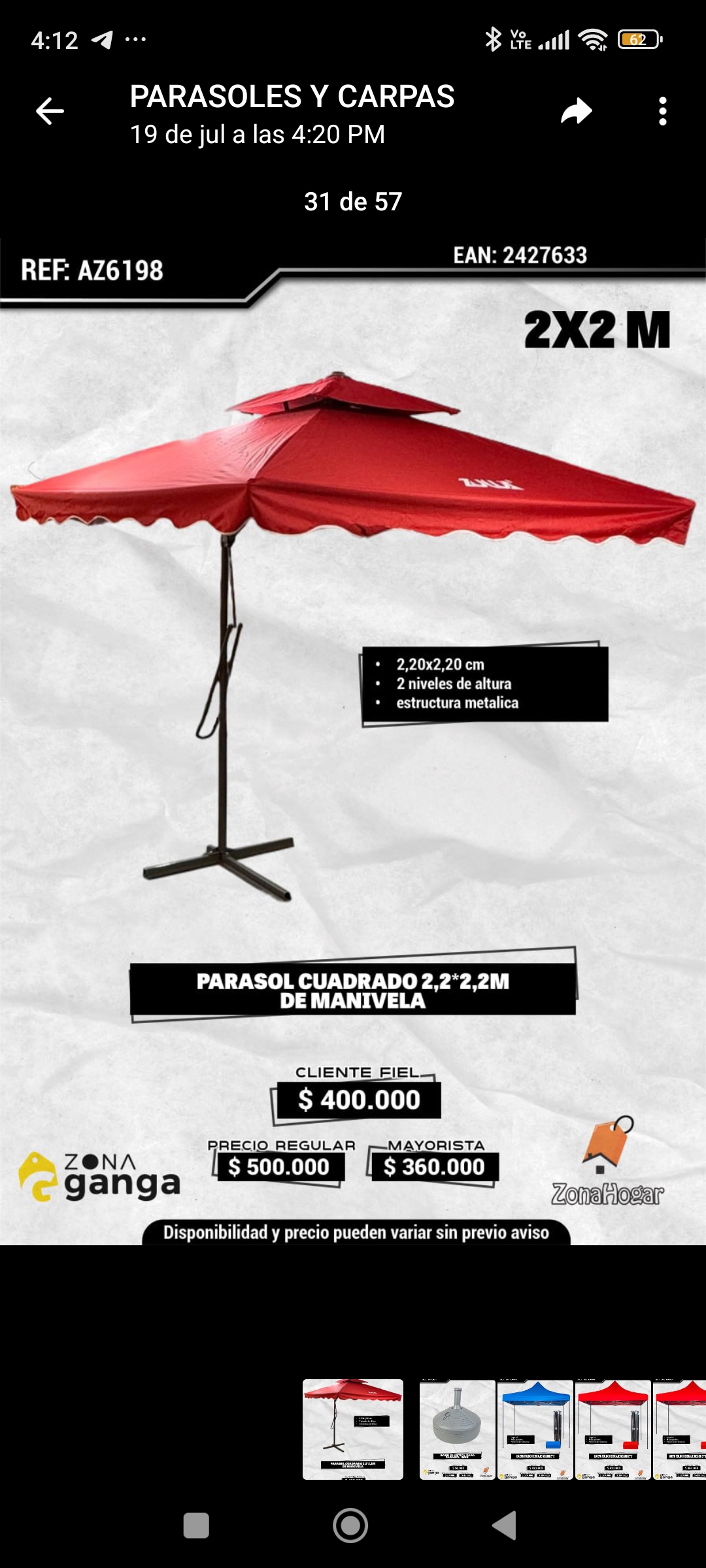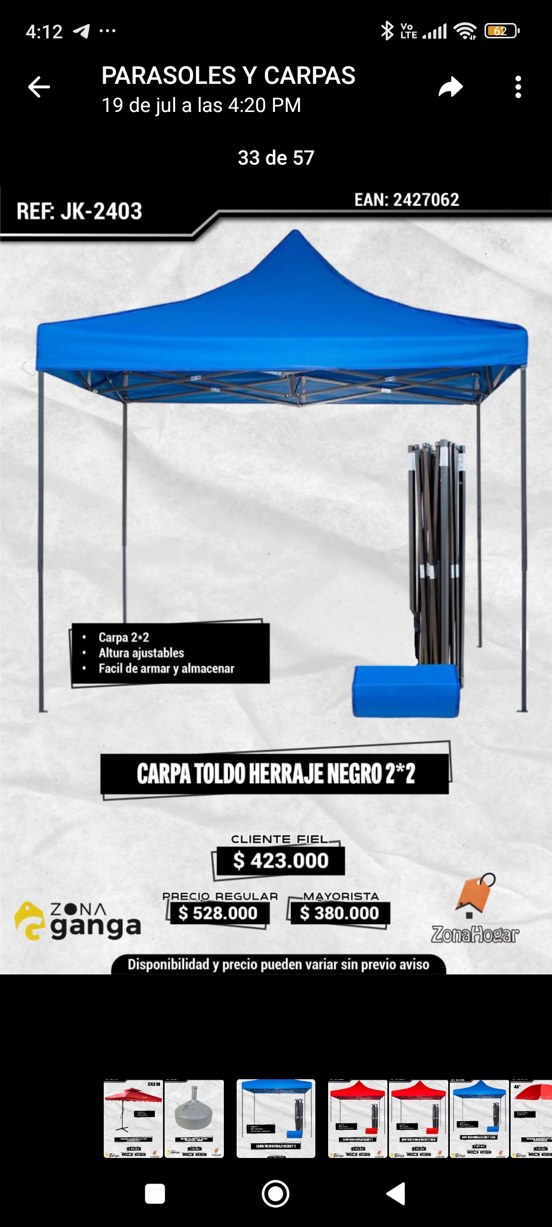 | 17 de octubre de 2025 | Zona ganga | Hogar y Decoración | Detal, Mayorista | 3217839087 | Vista Detalles |  | |